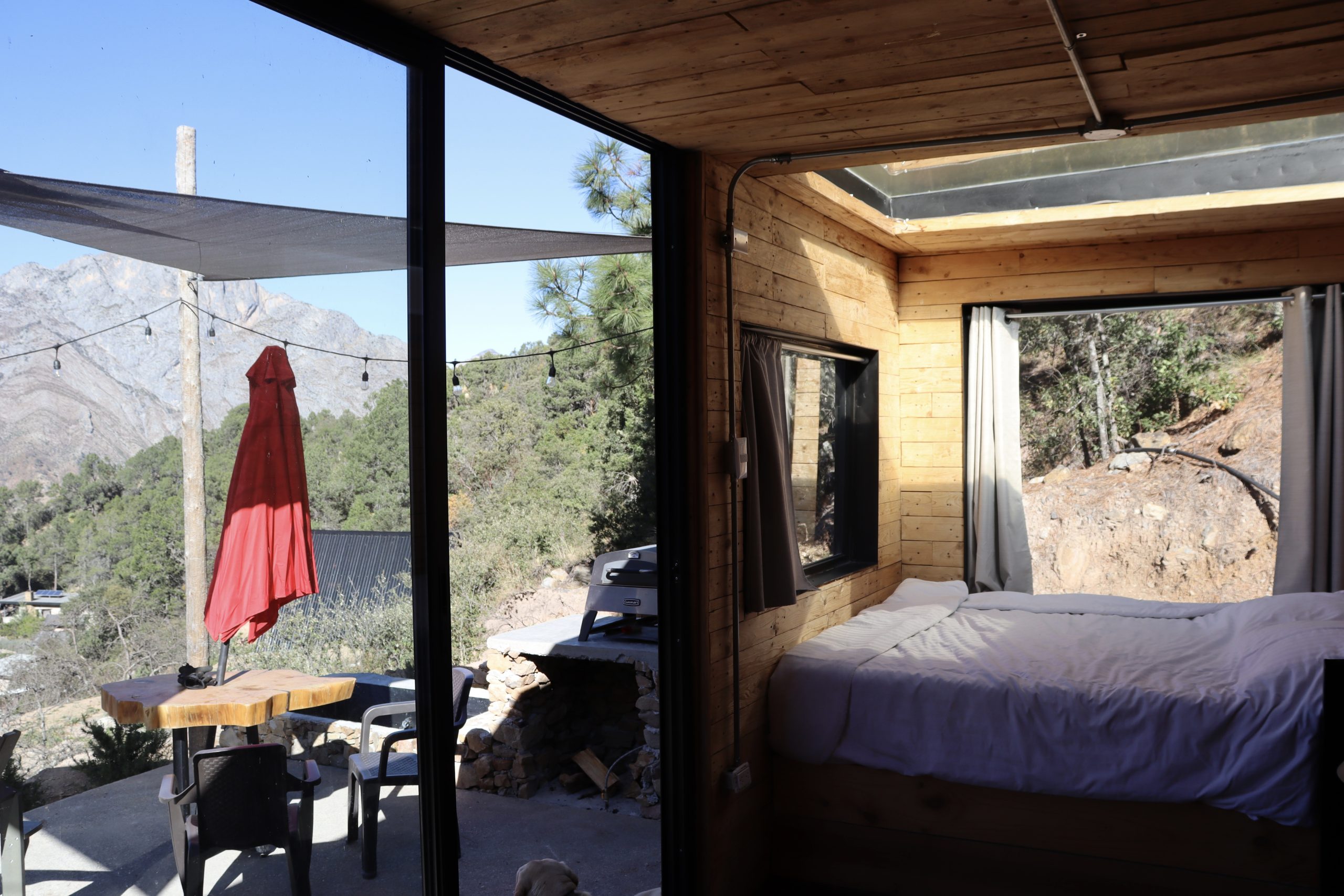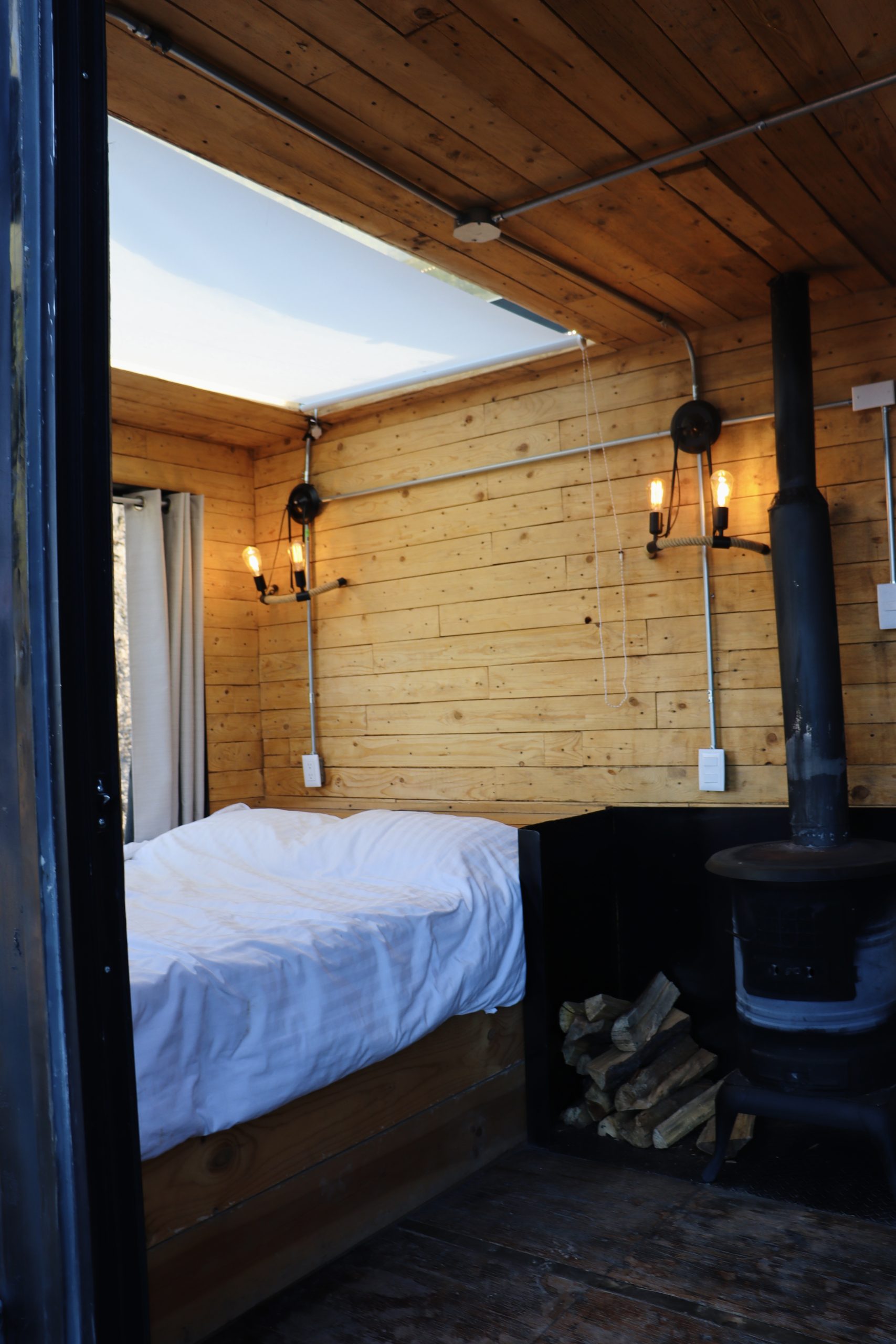 Acogedora cabaña de diseño industrial, inmersa en la naturaleza, ideal para aventureros y amantes de lo rústico.